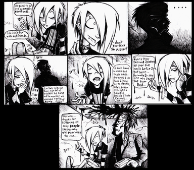 The poses here are so expressive, you've gotten really skilled in conveying emotion through them, along with the facial expressions you're onto a great combination. I absoulutely love his face in panel 5, subtle shading like that is another thing i love about your style.