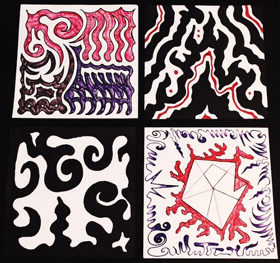 It's neon gel pens on black construction paper. I also used silver, gold and white.Β