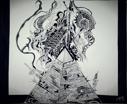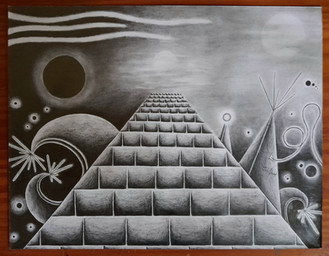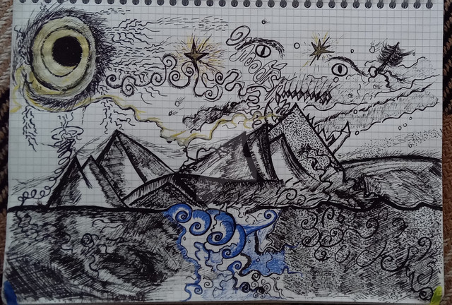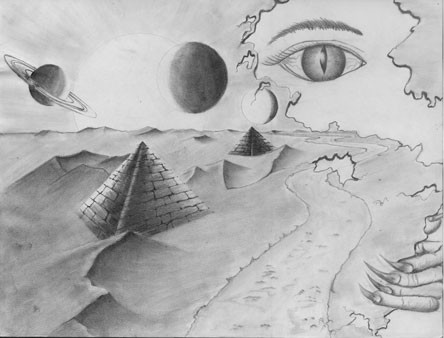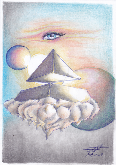 I love the contrast between the sharp solid pyramids and the wispy curly sky/clouds!