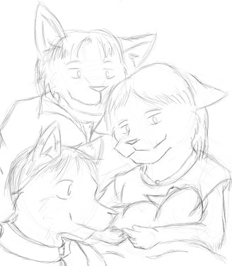 Hm....I forgot I was working on this! I've been so busy with other stuff--including writing--to mess with it. :3Anywho, this is my take on a "family" picture with all my siblings. being on the left, Red in the middle, Kelly on the right, Julie on the bottom, and Micheal on the far right. Always wanted to do something like this. Hopefully I'll get around to coloring it someday!
