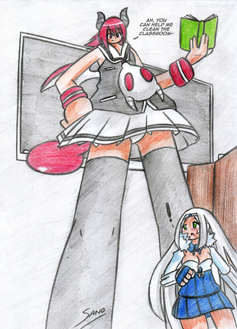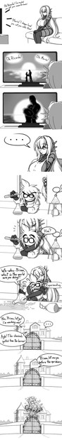 Prima's first exposure to the horror genre! No worries about Vair, he'll survive. It takes more than suffocation to end that guy~Yeah, I know this is late, but here's my Halloween picture. I don't have many good excuses to provide, other than lacking motivation. As usual, once I got the ball rolling I got into it however.