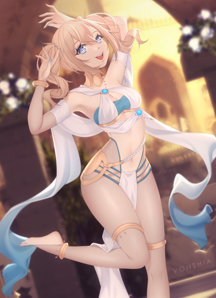 #saren #armpits #elfgirl #blondeblueeyes #navelbellybutton #costumeswap #princessconnect #princess_connect_redive #genshin_impact #sasakisaren #nilougenshinimpact