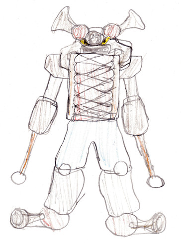Big man! I like the blue tinge to his colour. And lookit, the Spinal column eets Huge! You probably only forgot the flywheel on his right foot.