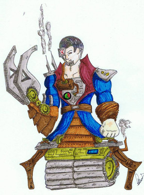 Whoa, awesome details on the mech parts of his body! Really cool!
