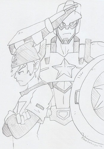 i felt like sharring this. America is dressed as Captain Amercia and England is dressed as Captain Brittin. Look it up, he's an actual superhero owned by Marvel. Russia is dressed as Ivan (lol himself?) from Iron Man 2 cause the chinese x-man dude i found didnt have a picture and i didnt want to go threw the whole alphabet when theres atleast 10 characters per letter *head desk* (thats America and Brittin's coolio WW2 outfits, i didnt get Captain Brittin's gas mask plate thing thoughIn depth explenation: Girls growing up watched Lizzy Meguire and dreamed of being a princess. I watched Spiderman and wanted too nom people like Venom. XD I had times when i'd pretend to be a princes, but i was usually like Mulan or Bell cause they kick ass. When i was like... 12, i played a game called Heroclicks that is still decently popular and loved learning the names of heros i didnt know. One of the ones couldnt help but laugh at was Captain Brittin. Now that i'm older and love Hetalia, i cant belive this never crossed my mind. First crossover that i thought of was when we saw the trailer for the new Thor movie and thought if he had a rape face he'd look like a real vertion of France. lol k.