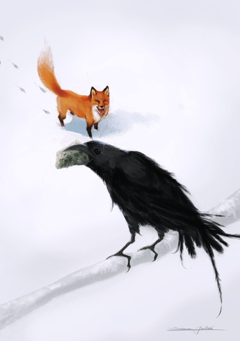 heh heh the fox is gonna get him!!! poor unsuspecting crow. This is very nice!