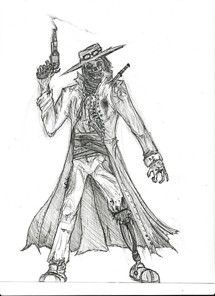 somebody ive been working on lately. i figured that if im going to make S/P interesting i need antagonists that are more active than a shadowy government agency.here we have the vampire hunter, (no name yet, but something german involving ghiest) and you can tell he hunts vampires just by lookin at him... to be honest , hes the amalgamation of several characters (i think the hat may be a bit much, stolen right from D) and is pretty much a walking cliche. hes trained for years to be the ULTIMATE vampire killer, but the problem is theres no vampires....enter schrodinger