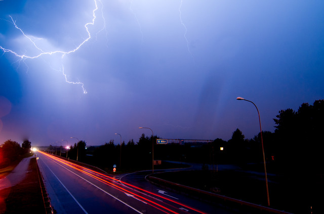 What an awesome shot. Talk about being in the right place at the right time. This also speaks of knowing your subject matter: that if you got ahead of the storm you might get some good shots, what exposure to use, etc.