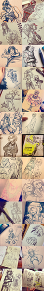 Various sketches compiled over at tumblr . Left out a few, but here's pretty much most of what I posted for the past few months, at least traditionally. Still hoarding a ton of other images in my sketchbook, but those are for another day....I should really find a scanner.