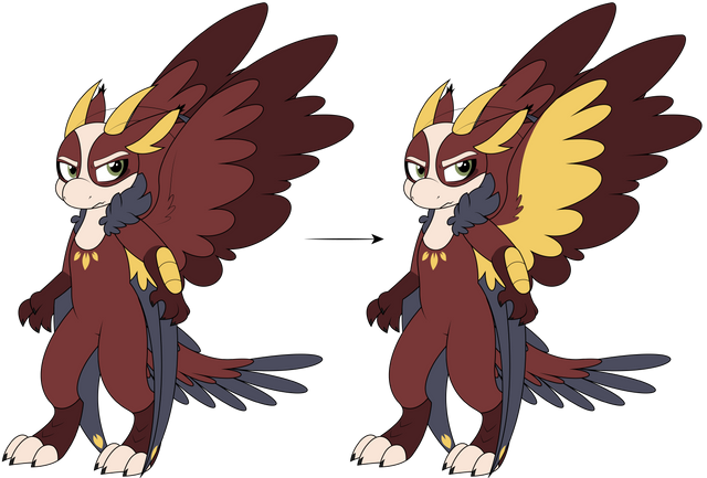 Let's face it, his original counterpart is basically a major gay fashion disaster and we all love this grumpy old man, his adult concept was very hard to come up with because of this, I couldn't find a good base color to even start from. But after several attempts, I'm very happy with the Wyngling version so I hope his adult version won't be that much of a pain to design when it comes to clothes (just found out he's shirtless in a very old concept game art, so thank god for that I can find a way to not disturb his big Quill wings).