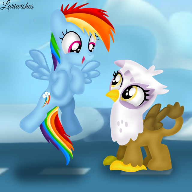 I love how you posed this pic! it is very playful and cute at the same time Dashie looks so adorable and Gilda is still very friendly