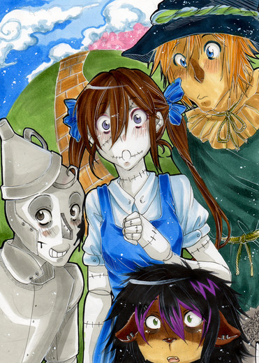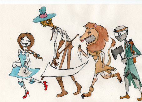 I guess I needed to draw something with a touch of lighthearted whimsy, classic childhood nostalgia. So I redesigned the goodies from Oz. I still haven't done any of the witches nor the great Oz himself, but these four and their little robot dog are fairly fun.