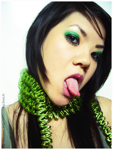 Wow there's just sumthin about this beautiful piece that is just simply irresistible. for me the wholed composition is just stunning. the brown eyes- pierced toungue leash- and hair. awesome
