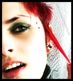 oh please, i can top those piercings. but very beautiful, i love her eyes