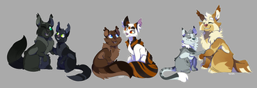 Saw a tumblr headcanon where Lionblaze resembles Sandstorm and since I like to think Sparkpelt resembles Lionblaze, here's Sandstorm and her grandkids! I really like this Headcanon :3Related content
