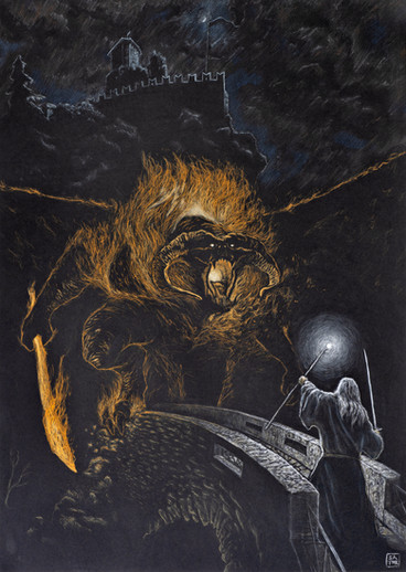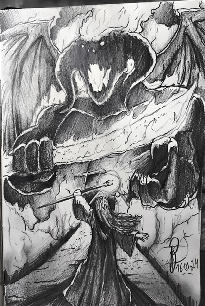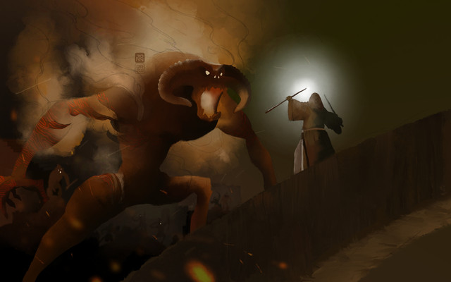 Quick digital sketch of Gandalf vs. the Balrog from The Lord of the Rings.Related content