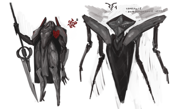 An alien ship. It pulls dead planets from black holes and uses them as fuel to power itself. Planets are altered once consumed by black holes and become pure energy/fuel for this vessel.The alien on the left is one of the main pilots of the vessel. He belongs to the race known as the Dohedrans.