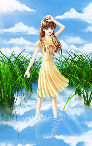 This is very CLAMP-ish, especially the hair and the eyes. Your hands are really good, Nya~! ^_^ Something of which I still lack.