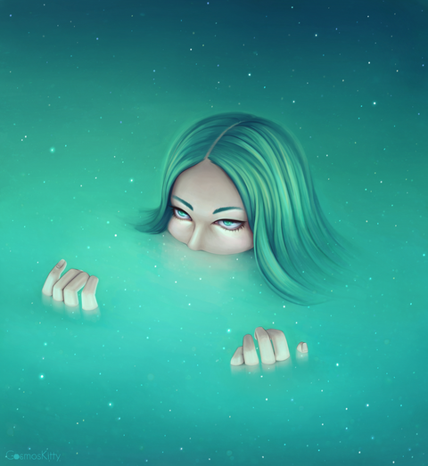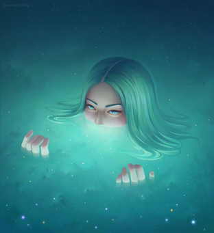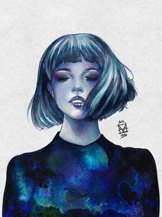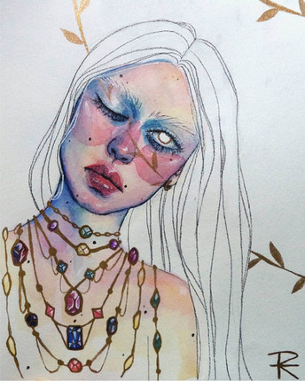 This is so pretty, I love the colour combination, it creates a nice mood, and the metallic/crystal part looks really nice too. The details in it really adds a lot to the piece, like the gold in the hair and the eyeliner, it makes the piece seem whole. This reminds me of a lot of modern/contemporary styles.