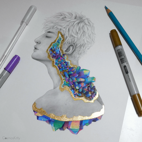 This is so dope!!! I love the touch of gold ink/paint for the exposed geode 😁