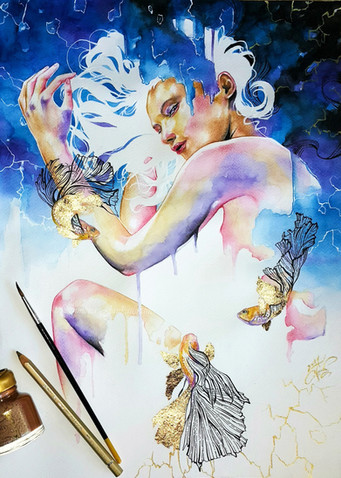 The Gold and POP of colors against the grey tones of the skin/hair/body are wonderful