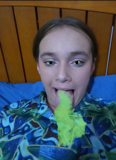 Made an edited version where we get to see her swallow flubber now!Credit and thanks to TheKingIsDead1995 for providing the original photo!