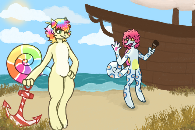 Hey! I wanted to get a little more fancy with my adopts so here we go! Two uncommon Protogens I created!