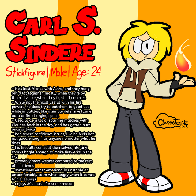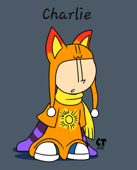 any longtime watcher of mine would know exactly who he is, but for all the newer watchers here (like, ALL of them), lemme give you a summary of who he isCharlie is a tiny little sun deity with super solar powers and the nephew of Handy. He earned his powers thanks to a sun angel whom he freed from a bear trap deep in the woods far away from Reeversburg. Upon freeing her, she granted him the ability of becoming solar-powered, meaning he can use his powers that are as strong as the heat of the sun. He's playful and generous, but he can also be deemed extremely dangerous if his powers aren't handled responsibly. His powers also allow him to transform into the very thing he cherishes most: cats.