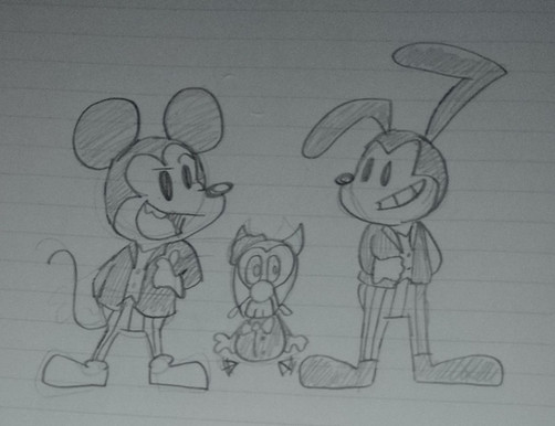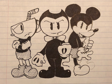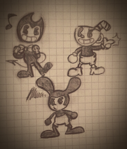 I just wanted an excuse to draw these three together. XDAnd Bendy, stop making Cuphead uncomfortable, you little shit.