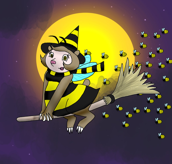 A beautiful mokn with a beautiful bee which in front of the moon.