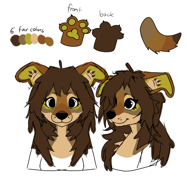 I made this ahah,so yeah I think I wont change her design,since I cant fucking do it no matter what colors or what I try..so yeah heres a proper fullbody of her and reference,second reference I ever made ,she is chubby just note that ahahNote: SHE WALKS BOTH ON 4 AND 2 LEGS,mostly 2 legs tho,sheisnt very anthro,just dog ahha who is chubby