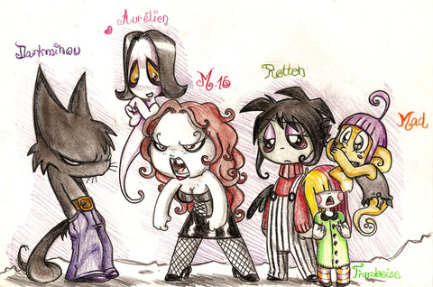 they is friggin adorable as kids!! CHIMA YOU SHOULDA STAYED CUTE! heehee! Merry is so dang innocent right thar!! Mellon you loveable jerk and "nerd" Tin! Emcee is jeeaalllous!!! Darkchovi is pretty cute as a kid XD and Zero is of course still loveable as ever!