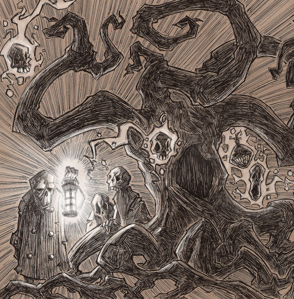 The creature is absolutely wonderful! This meli-melo of witches, it's just so original and well-drawn! I really like it! Anyway, I understand why they're running like crazy, chased by these things!