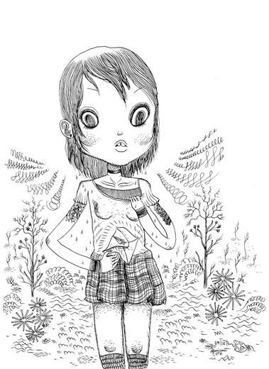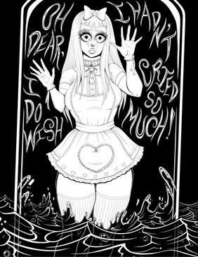 "I had this strange dream of a woman who died in an accident. She fell into the ocean with her car. She was dead, but her hair was growing uncontrollably, flowing with the water... it was like she was turning into some kind of human seaweed".I don't like how it turned out. I feel the need to make another version...