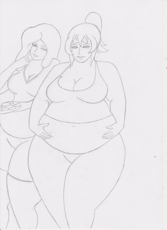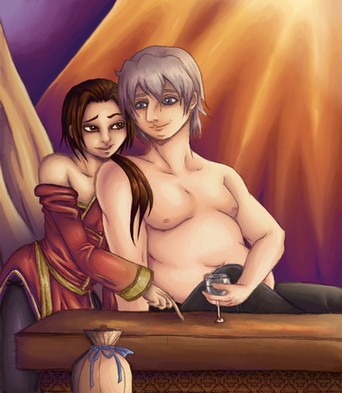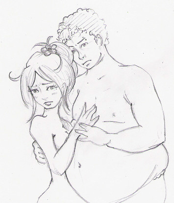 Oh, I'd love to see this beautiful piece in color! *starry eyes* All your characters are so irresistably gorgeous! Honestly, I want to ravish them all... and possibly feed them a few cartons of ice cream and dozens of eclairs...ahh, so sexy!