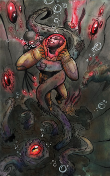 #abyss #fish #monster #ocean #redeyes #seaweed #divingsuit