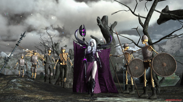 Viconia, Drow Priestess of Shar from the PC games 'Baldur's Gate' and 'Baldur's Gate 2'.Here she is using her power to win a few friends over to her side... considering how she speaks to the other NPC's in the game, these are probably the only friends she will have