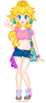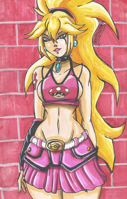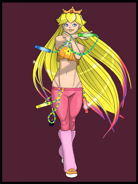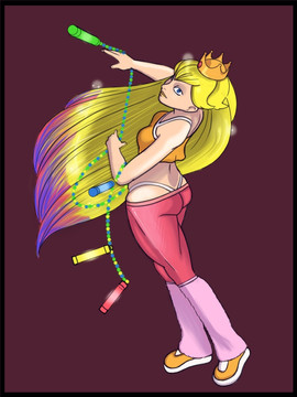 I wanted to do a quick painting to break my DA absence... and so we are given Princess Peach - Raver at large! Honestly, it's an inevitable conclusion with all those mushrooms and rockets and strange, ubiquitous music...I call this a WIP because I haven't worked the toys, light sticks or shoes with shading, and I haven't even pretended to make glowing effects yet...
