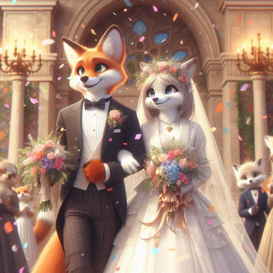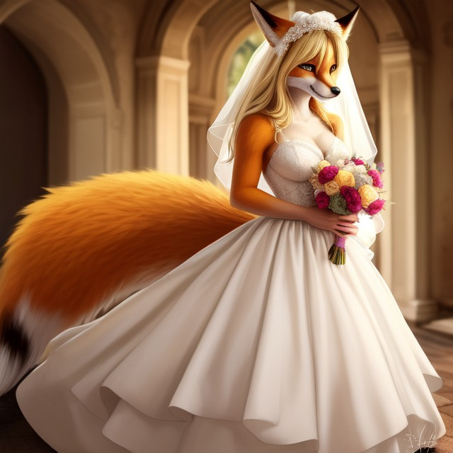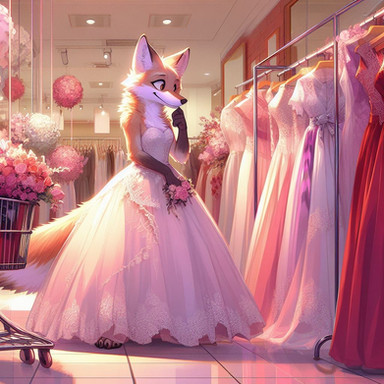 A male fox in a wedding dress. Because boys deserve to be pretty to.Related content