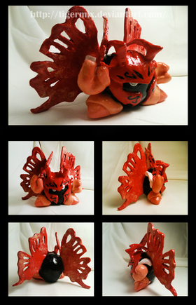 Wow! Really awesome! The wings don't look bad at all, they look fine to me ^^ I love what you did with that red ribbon thing!