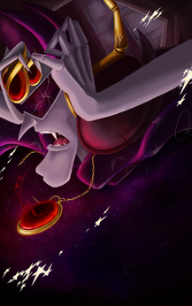 I love your Kirby-combined-with-Chinese-culture artworks! This one in particular is very pretty. The flow of everything- from the water, to the costume, to Meta Knight's wings- is just so perfect! I really like the calligraphy in the background and the detail in the skull necklace.