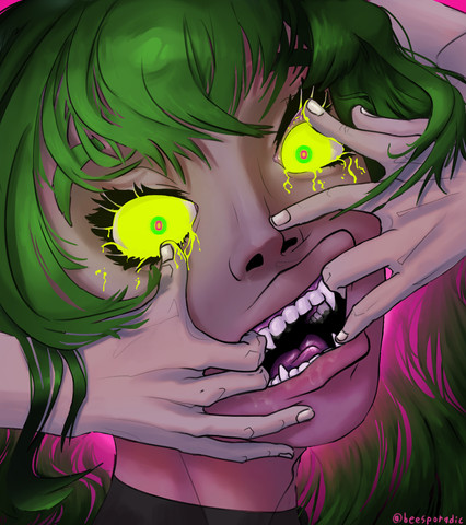 #green #pink #animeart #animedrawing #digitaldrawing #digitalillustration #digitalpainting #froggirl #greenhair #greenhairedgirl #mangastyle #monster #monstergirl #origionalcharacter #pinkeyes