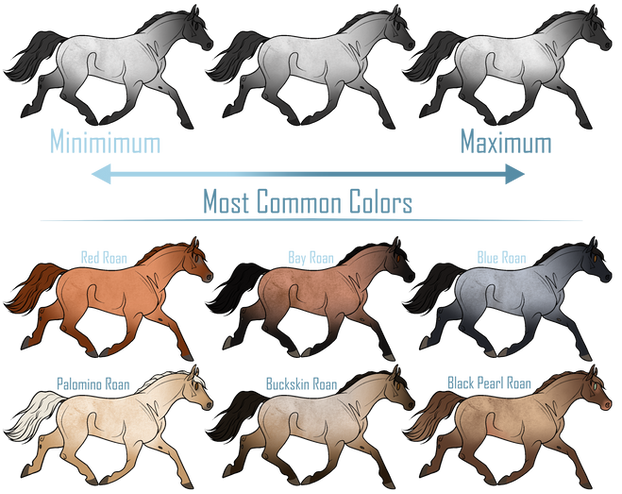 Cremello, smokey perlino, perlino, and smokey seal perlino.