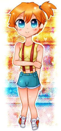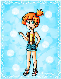 I don't know why, but I just suddenly thought "IMA GONNA DRAW MISTY". Also watched the first Pokemon episodes when my little brother was watching it, and felt so nostalgic, just if there were DVDs of the first season, but NO! I can't find anywhere here in Finland!Anyway, I hope I didn't over do the background, but I quess I did! SORRY ;_;