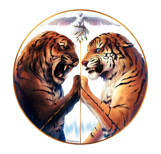 I love how the light of the cats bounces slightly off each other as can be seen on their faces. Nice job on the details~
