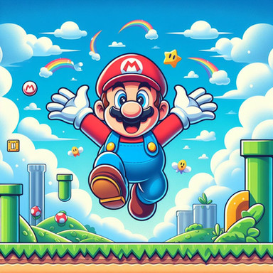 AI art made from Bing Image Creator.Mario from Nintendo.