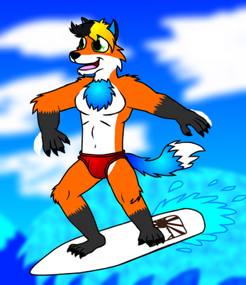 #anthro #beach #digital #drawing #fox #fun #furry #marcos #oc #summer #water #watergun #dingopatagonico