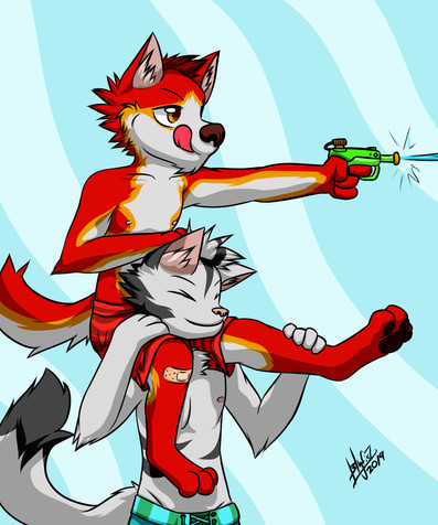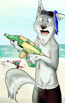 Commissioned byMarcos M Fox enjoys the summer with his watergun