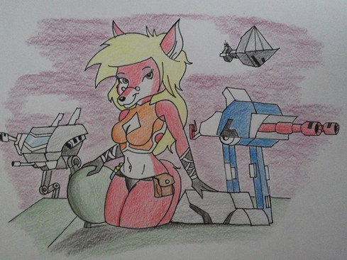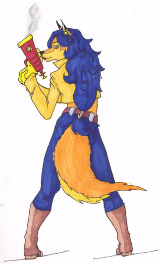 #anthro #colored #drawing #ermine #female #furry #gun #leotard #mustelid #scifi #traditional #yvonna