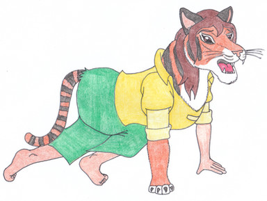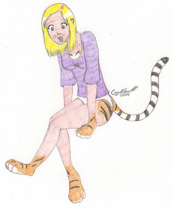 Oh jeez, that's one sexy beauty, how do you think this happened? I think she stretched for a pose (hence what she's wearing,) and purred like a tiger on accident, causing this to happen.